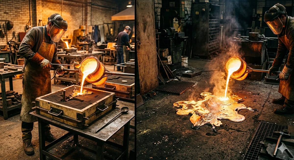 Watch a blacksmith pour molten bronze into a sand mold. The metal has no opinion about what shape it would take. It doesn’t decide to become a fitting. The mold decides. The metal fills whatever container it is given and holds that shape permanently. Remove the mold, and you have a precision component. Pour the same metal on the workshop floor, and you have an accidentally shaped blob that’s expensive to clean up and useful for nothing.